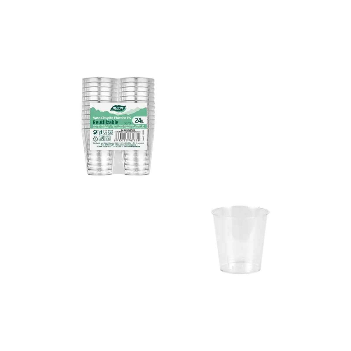 28 valoraciones en VASO DE CHUPITO ALGON Ø 4 CM 30 ML 24 PIEZAS (24 UNIDADES)