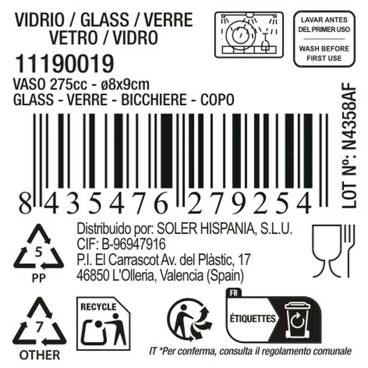- Capacidad: 275 ml